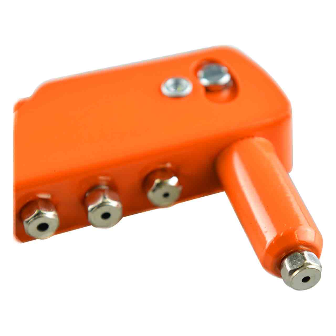 Стальной заклепочник имеет сменные 4 насадки для заклепок различных диаметров.