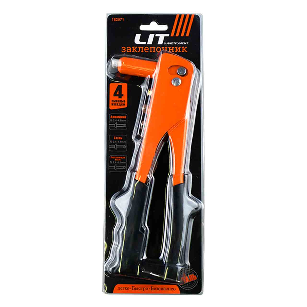 Заклепочник для вытяжных заклепок - новинка от "LIT" предназначенная для установки вытяжных заклёпок Ø 2,4 мм - 4,8 мм из любых материалов, включая нержавеющую сталь. Заклёпочник способен удерживать заклепку в инструменте без сжатия ручек перед ее установкой.